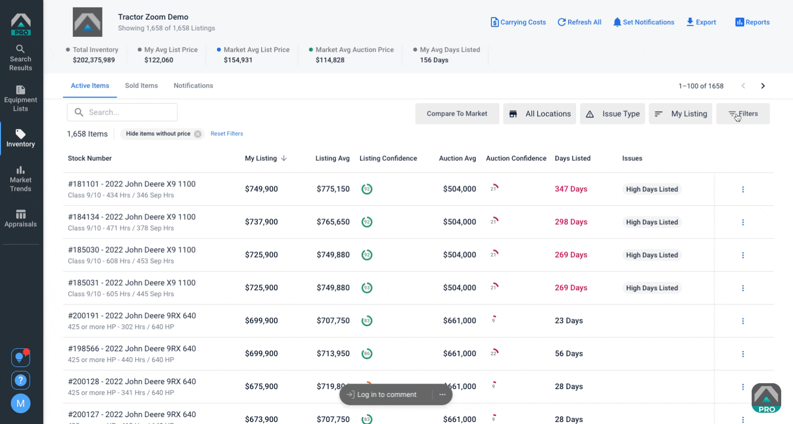 Both features are essential as equipment dealers face average carrying costs ranging from $1,400 to $1,600 per week per million dollars in inventory. Time on Lot can help minimize the amount of aging inventory on dealerships’ lot and combat the associated carrying costs.